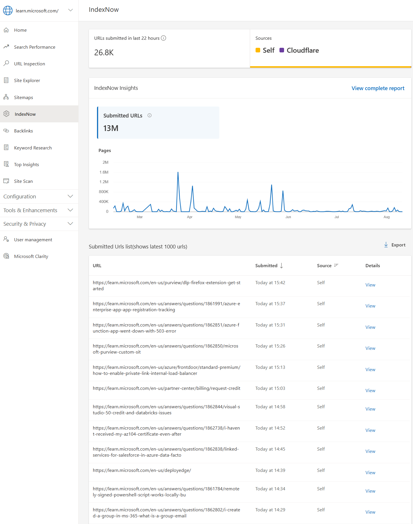 And from the IndexNow tab, view how quickly your content updates and tests are indexed or submit specific URLs for indexing. As always, be sure to review your own reporting tools to determine how your URLs performed against your previously set KPIs.