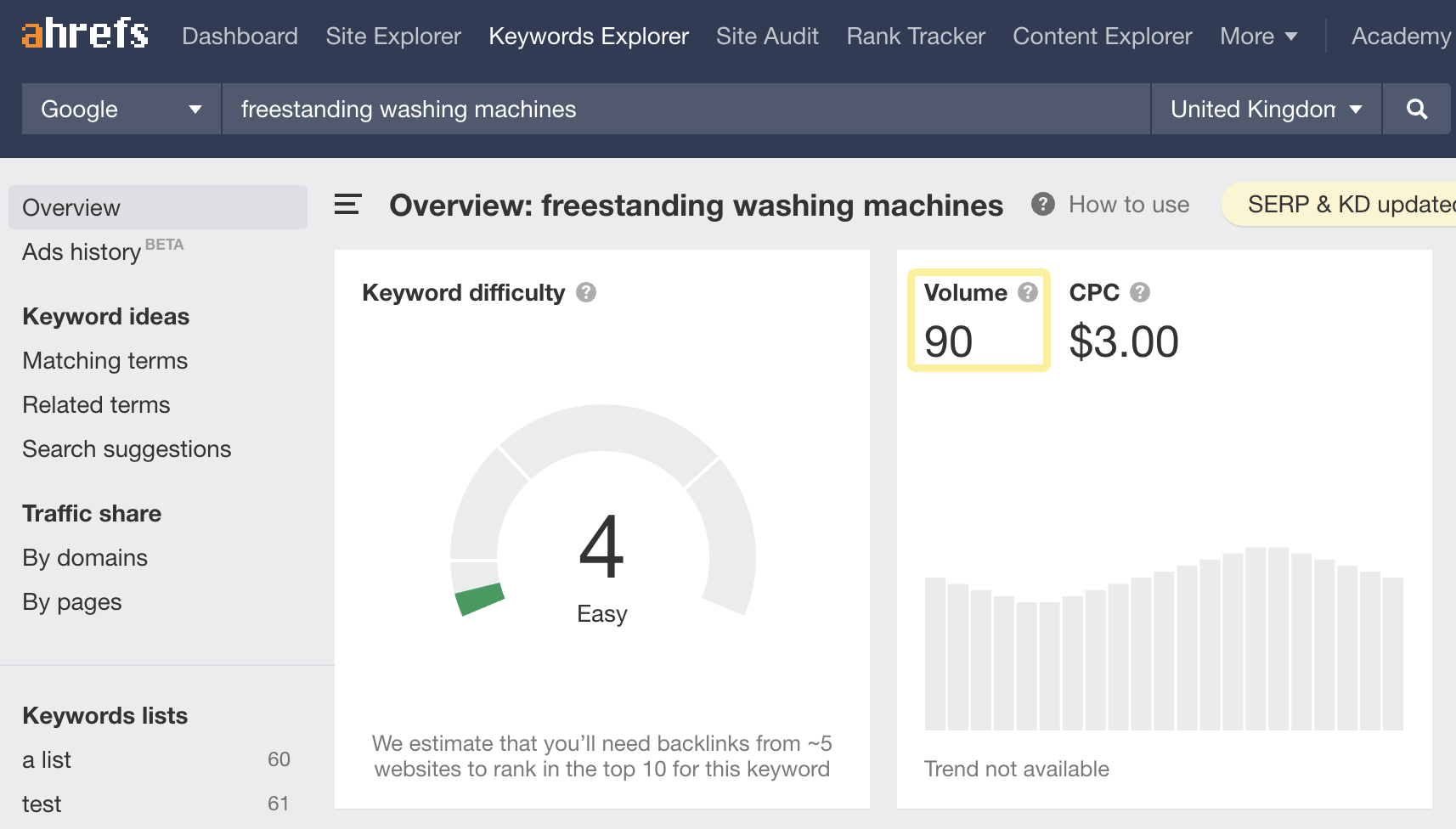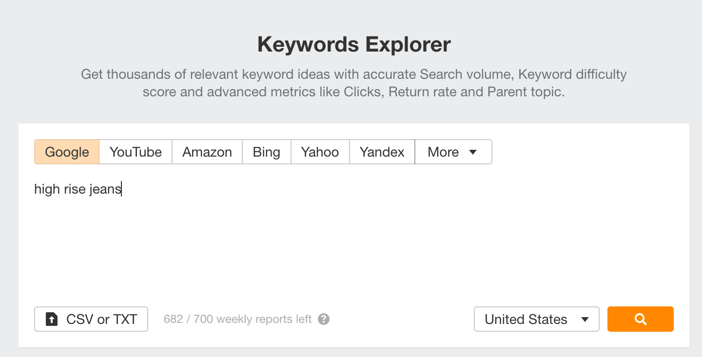 To start with, you’ll need to identify keyword opportunities with Ahrefs Keyword Explorer. Doing this is incredibly easy.