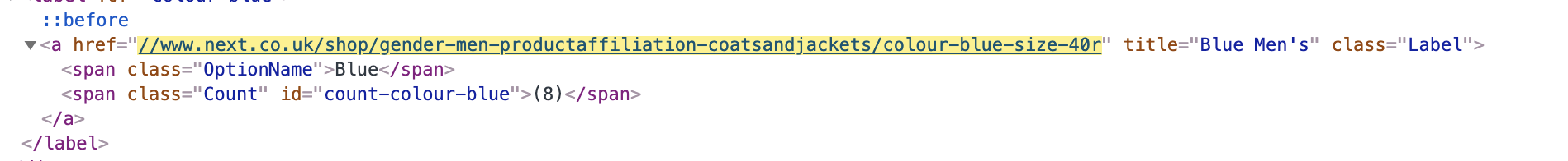 Once you’ve followed that link, you can then check the HTML of another facet like the blue one: