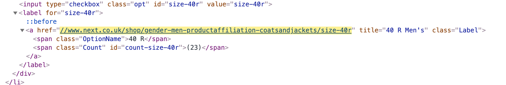 When you inspect the HTML of a facet, you’ll see a link in the HTML: