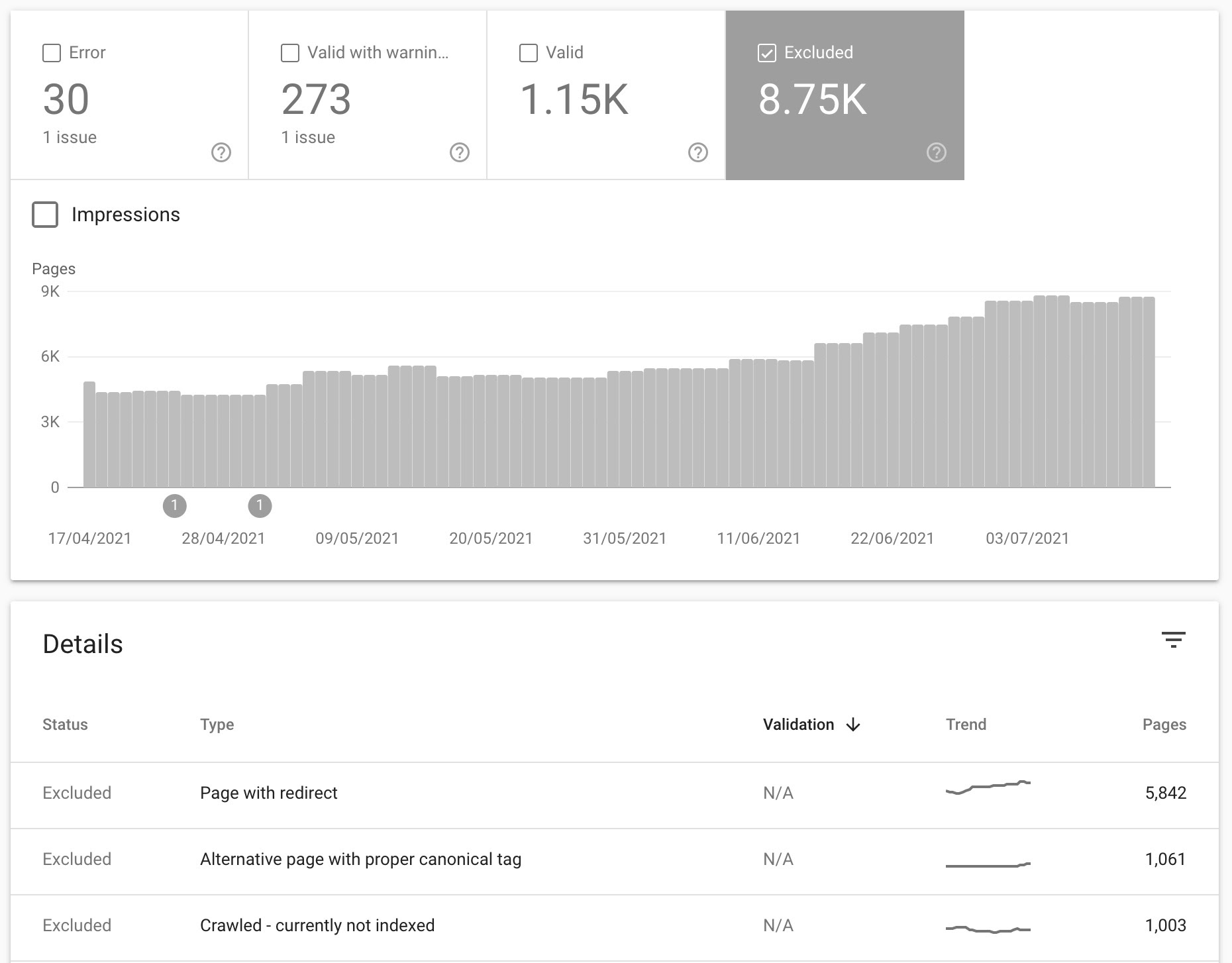GSC’s coverage report is another great way to uncover crawling and indexing issues quickly.