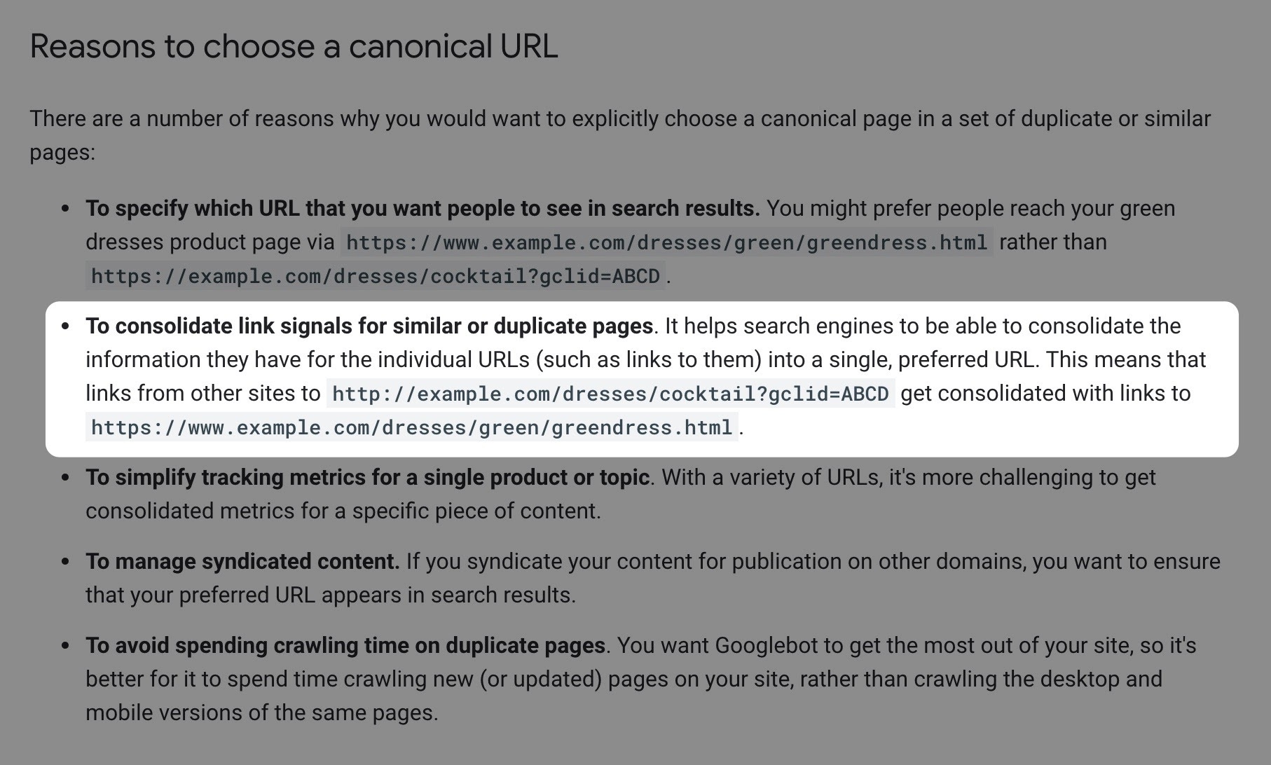 - Dilution of ranking signals into multiple URLs (rather than consolidating into a single stronger URL)