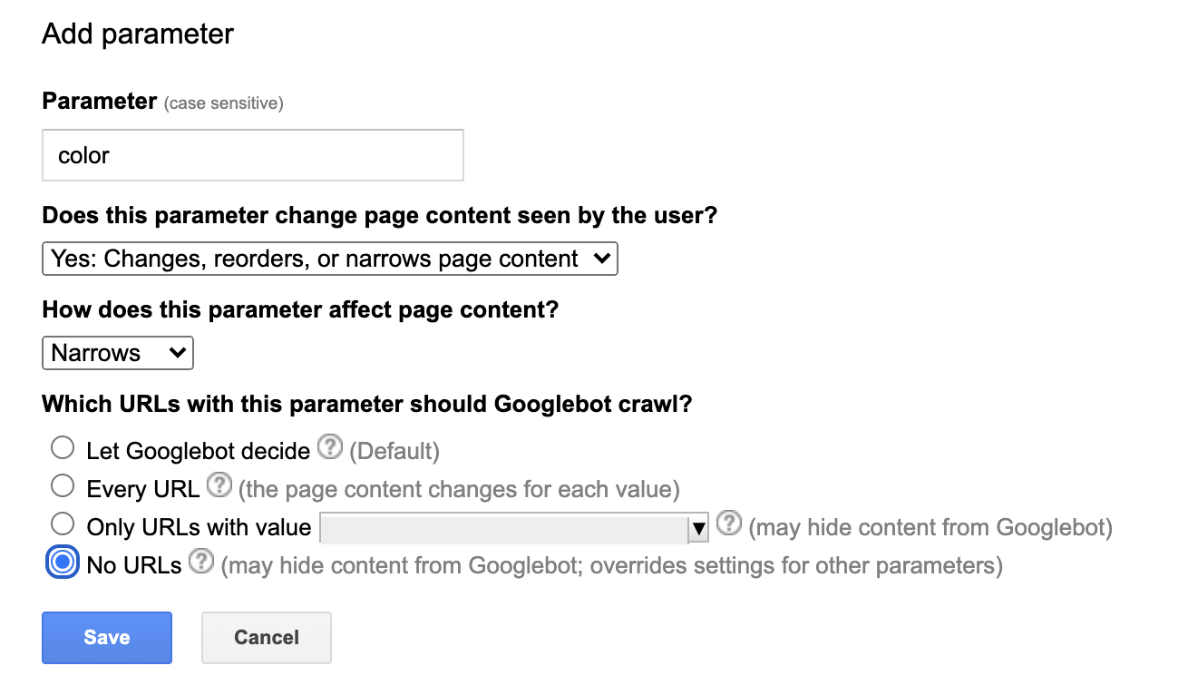 Still, this is a good way of getting faceted URLs out of Google’s index if all else fails.