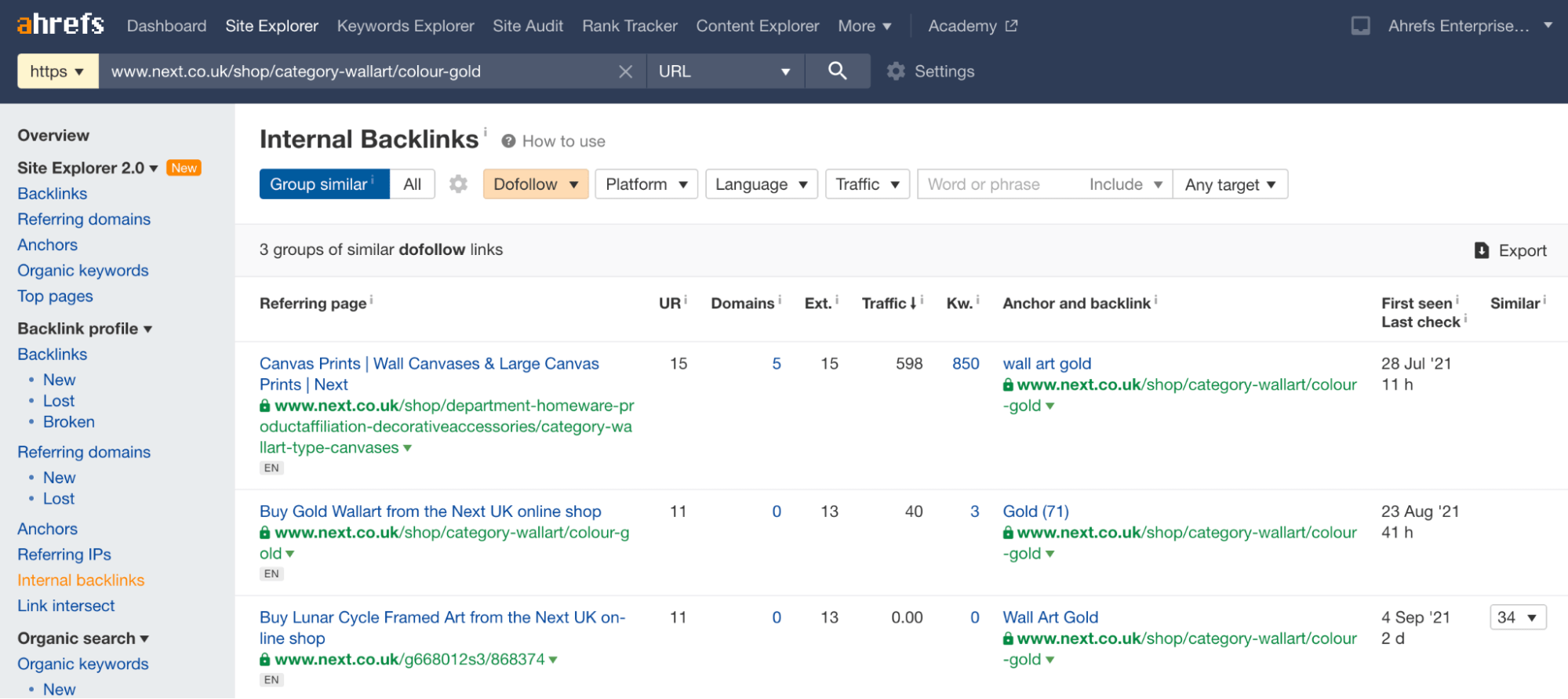 You can find internal links to problematic faceted URLs using Ahrefs’ Site Explorer:
