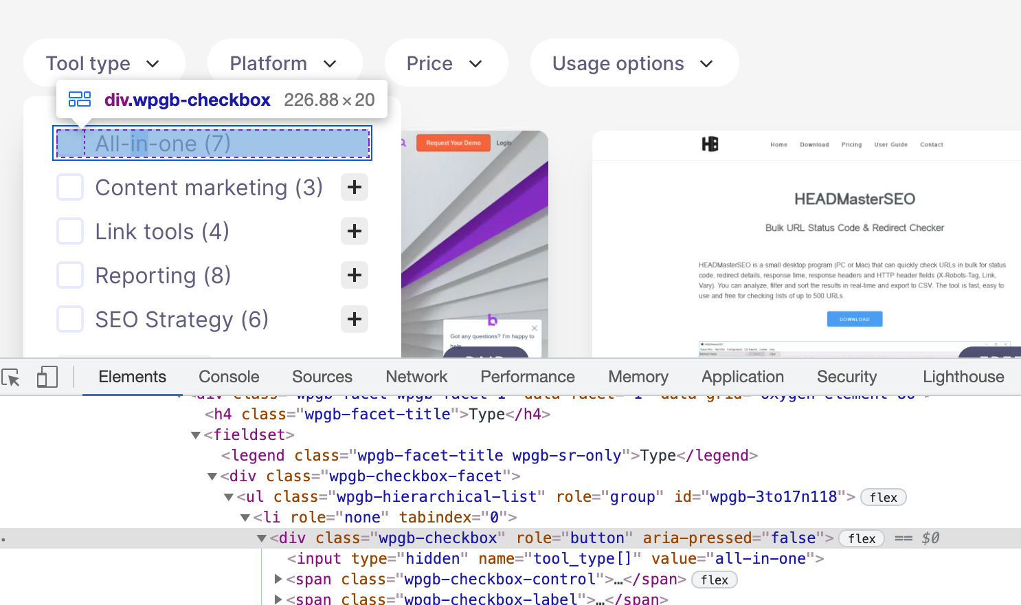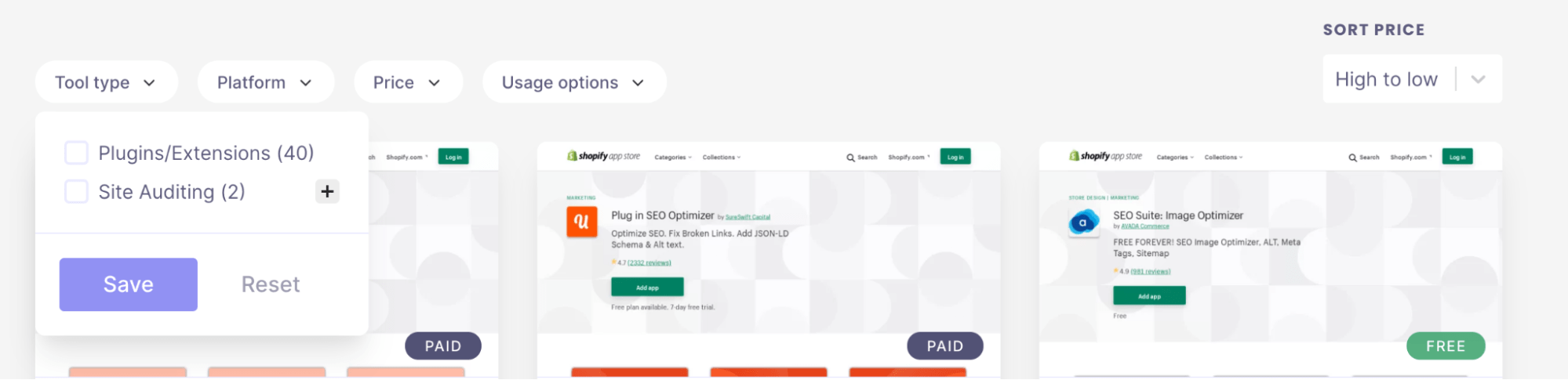 If you access that URL, you’ll see the filtered grid of tools is updated to reflect the applied filters.