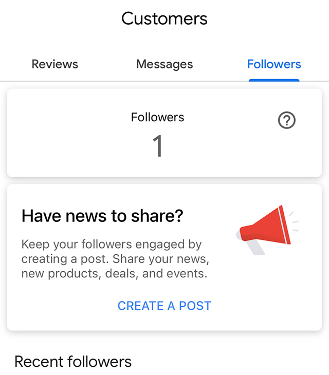 Here is the Google help document on followers in Google My Business and this is what it looks like: