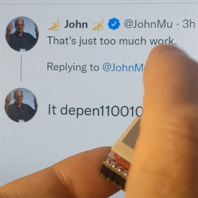 Here is a still photo from a video John Mueller of Google made of his Arduino binary USB keyboard. John said if you prefer binary, you can use this binary keyboard to type. It might take longer than a normal keyword but hey. You can read more on his personal blog over here.